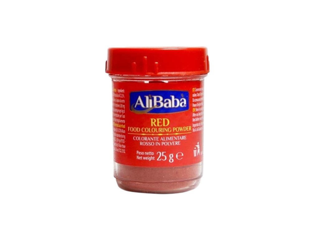 Alibaba Food Colouring Powder - Red is a vibrant, easy-to-use coloring agent designed to add a bright red hue to your culinary creations. Perfect for cakes, pastries, candies, and other baked goods, it enhances visual appeal with its bold, consistent color. Made from safe, food-grade ingredients, it helps make your desserts more attractive and eye-catching.