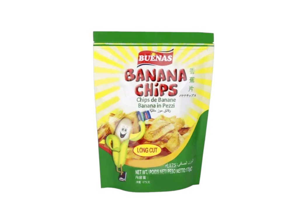 Buenas Banana Chips Long Cut are thin, crispy slices of ripe bananas fried to golden crunch with a naturally sweet, tropical flavor. Lightly salted for balance, their long-cut shape makes them perfect for snacking, topping desserts, or pairing with coffee. Ideal for on-the-go munching or sharing.