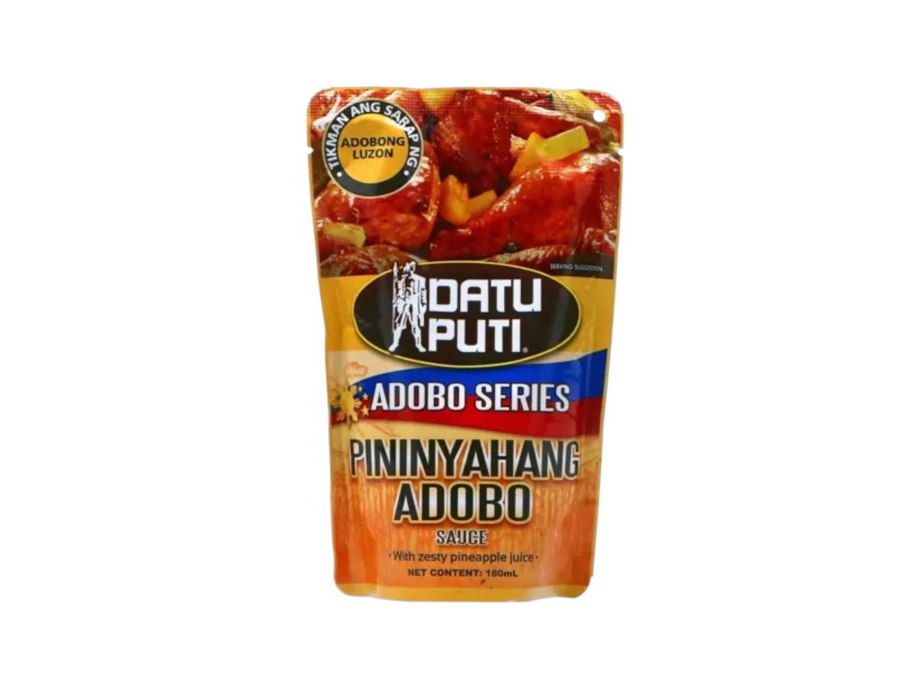 Datu Puti Pininyahang Adobo Sauce is a sweet-and-sour Filipino-style adobo sauce that blends tangy pineapple, cane vinegar, soy, and savory spices for a tropical, flavorful glaze. Ideal for marinating chicken, pork, or seafood, it creates a glossy, caramelized finish with bright pineapple notes and balanced acidity. Great for quick stir-fries, grilled dishes, or as a dipping sauce.