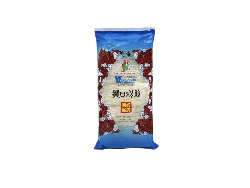Double Dragon Longkou Vermicelli Noodles (500 g) are a versatile and popular type of noodle made from mung bean starch, known for their excellent texture and ability to absorb flavors. These translucent noodles are perfect for a variety of dishes, including stir-fries, soups, and salads.