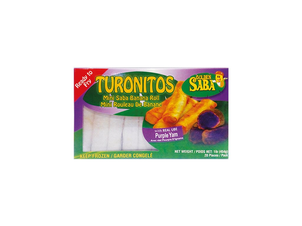 Golden Saba Turonitos Mini Spring Rolls with Purple Yam (Ube) are a delightful fusion snack that combines the sweetness of saba bananas with the rich, creamy flavor of purple yam, also known as ube. These mini spring rolls are expertly crafted, featuring a filling made from ripe saba bananas and ube, wrapped in a crisp and golden spring roll pastry.