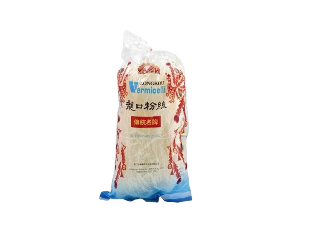 Longkou Vermicelli Noodles are fine, thin rice noodles originating from the Longkou region. They are lightweight, delicate, and semi-translucent, with a smooth texture that becomes soft when cooked. These noodles are versatile and commonly used in Asian cuisine, suitable for stir-fries, soups, salads, and spring rolls. They absorb flavors well and cook quickly, making them a convenient choice for preparing flavorful and satisfying dishes. Their neutral taste complements a variety of seasonings and ingredients, adding a pleasing texture and visual appeal to culinary creations.