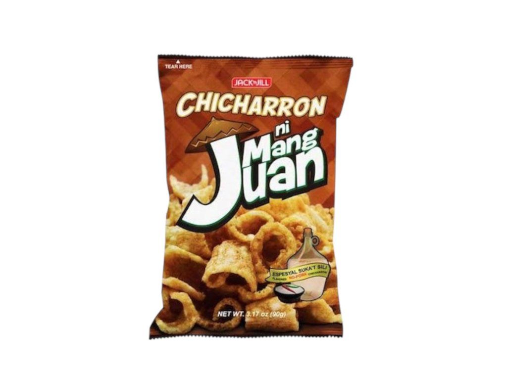 Jack ‘n Jill Chicharron ni Mang Juan Sukang Paombong Suka’t Sili — crunchy, puffed pork rind snacks seasoned with a tangy Sukang Paombong (traditional Filipino cane vinegar) and spicy chili blend. Each bite combines light, airy crispness with a bright vinegar punch and a lingering heat that complements the salty, savory pork flavor. The seasoning delivers a balanced sweet-acid tang and moderate spiciness rather than overwhelming heat. Packaged in single-serve or sharing sizes for on-the-go snacking, they pair well with cold drinks or as a zesty accompaniment to meals.