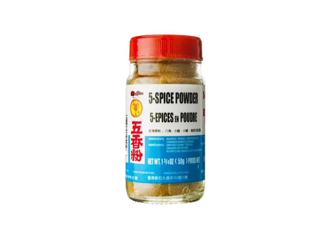 Mee Chun Brand 5-Spice Powder — aromatic blend of star anise, cinnamon, cloves, Sichuan pepper, and fennel; warm, sweet-spicy seasoning for marinades, braises, and stir-fries.