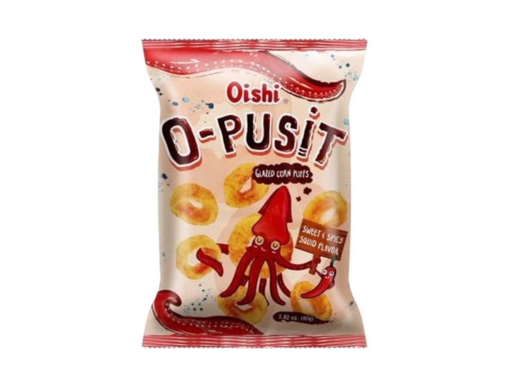 Oishi O-Pusit Glazed Corn Puffs Sweet & Spicy Squid Flavor 80g