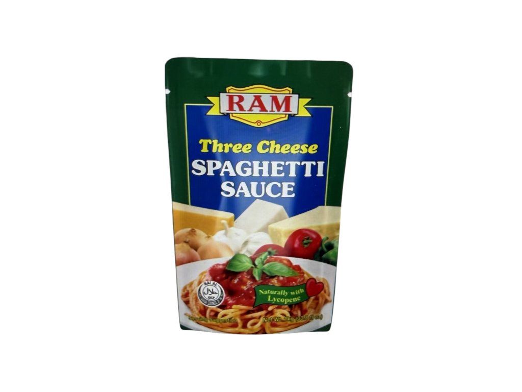 Ram Three Cheese Spaghetti Sauce is a ready-to-use pasta sauce that combines a tomato-based foundation with a rich blend of cheese flavors. It features a balance of sweetness and savory notes, typical of Filipino-style spaghetti sauces, enhanced by the creamy and slightly tangy taste of mixed cheeses.