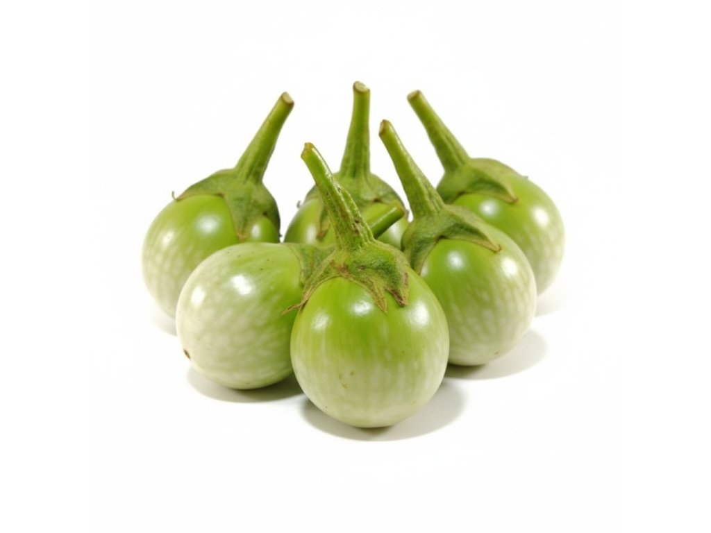 Nutritionally, small round green eggplants are low in calories and provide dietary fiber, antioxidants, and small amounts of vitamins such as vitamin C and B-complex. Overall, they are valued both for their distinctive texture and their ability to add freshness and slight bitterness to savory dishes.