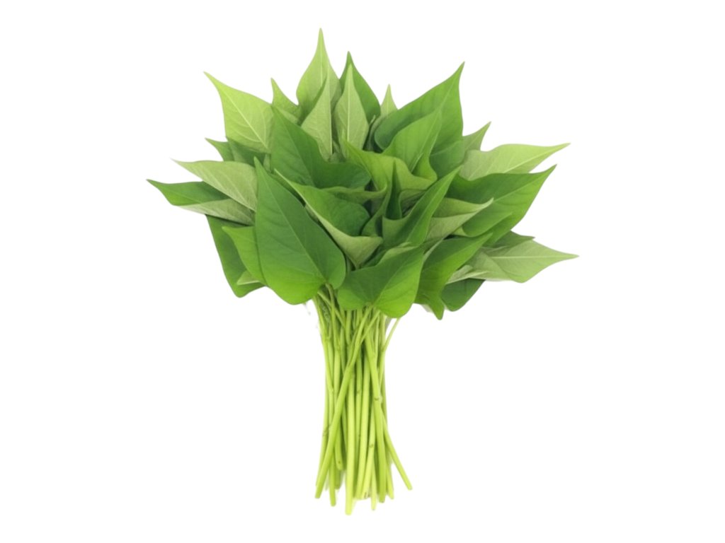 Sweet potato leaves are the tender edible leaves of the Sweet potato plant. While the plant is widely known for its sweet tuber roots, the leaves are also highly valued as a nutritious leafy vegetable in many parts of the world.